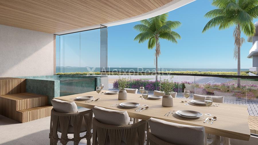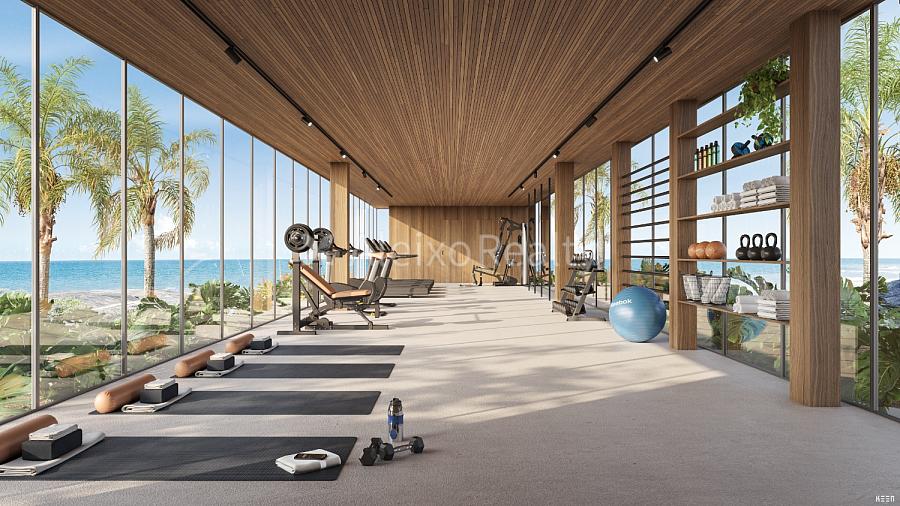 Cada apartamento foi projetado para valorizar a integração com o mar, com piscina privativa na varanda e ambientes amplos que privilegiam a luz natural e a ventilação cruzada.