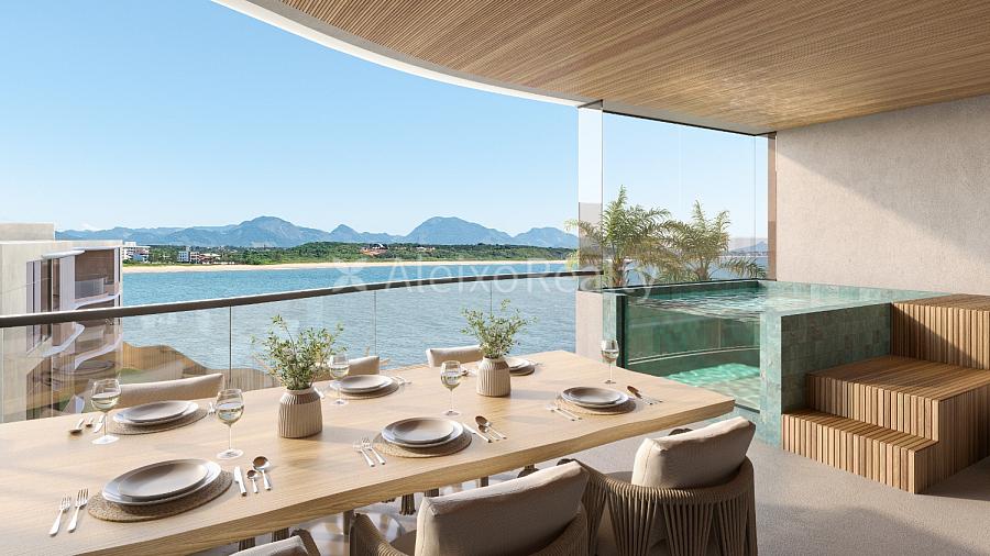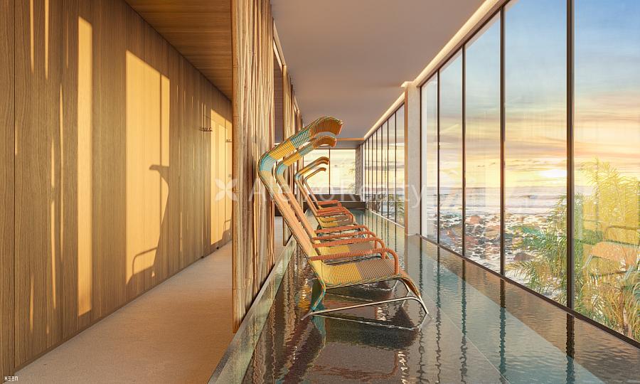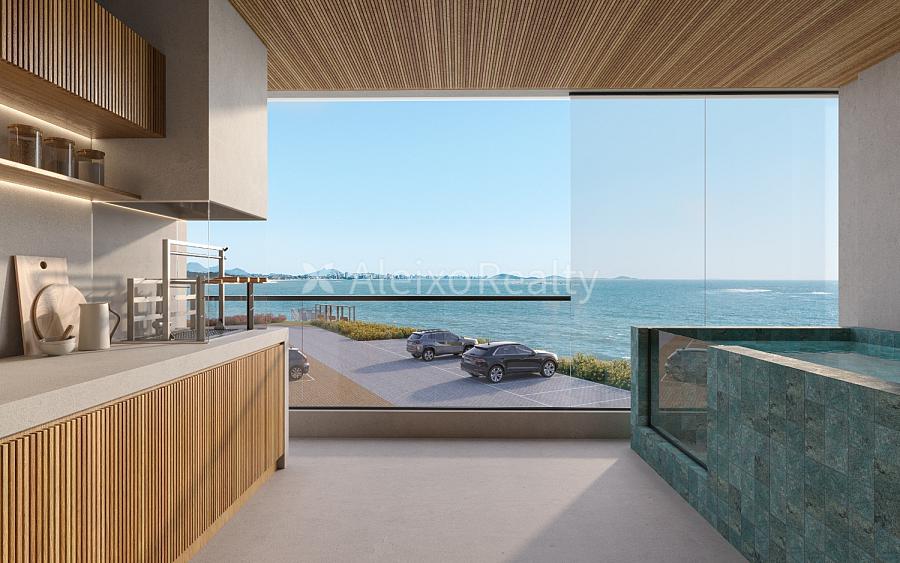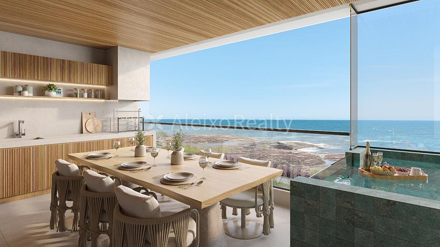 Cada apartamento foi projetado para valorizar a integração com o mar, com piscina privativa na varanda e ambientes amplos que privilegiam a luz natural e a ventilação cruzada.