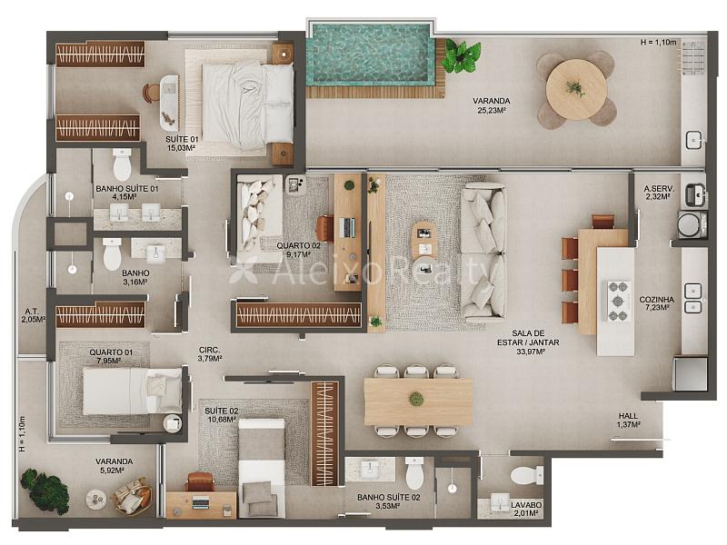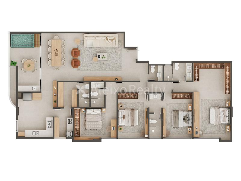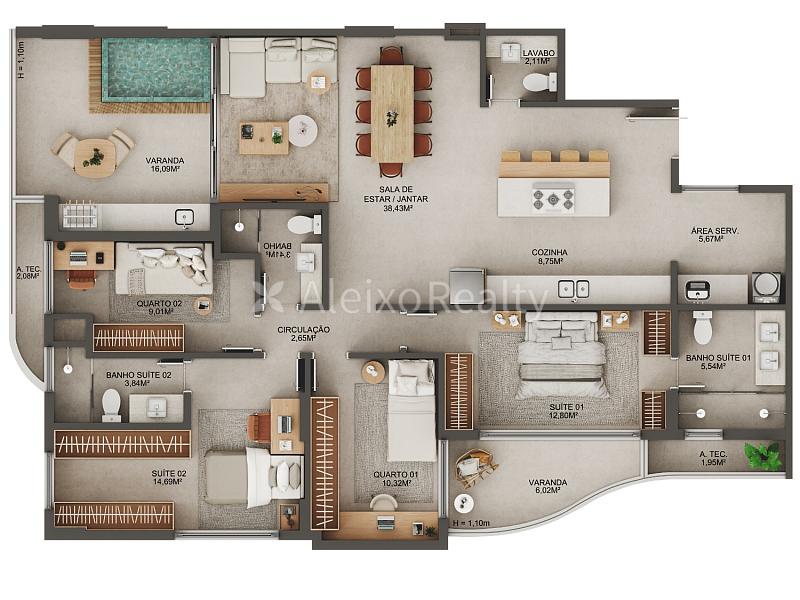 • Tipologias de 3 e 4 quartos, com suítes amplas de até 24 m²