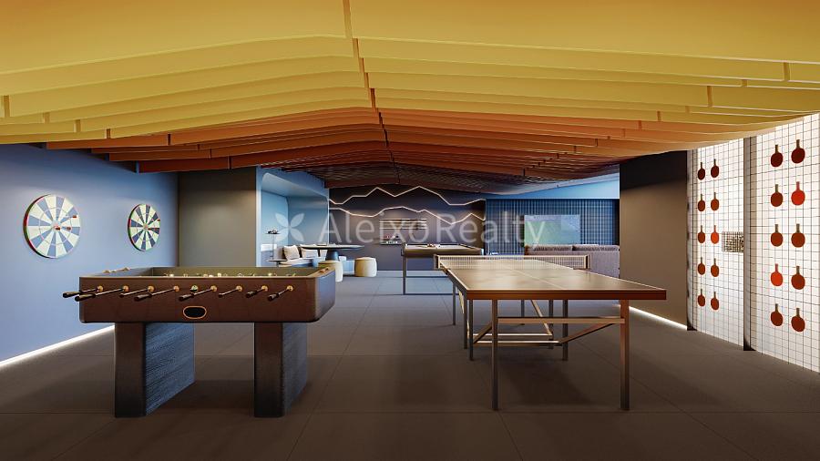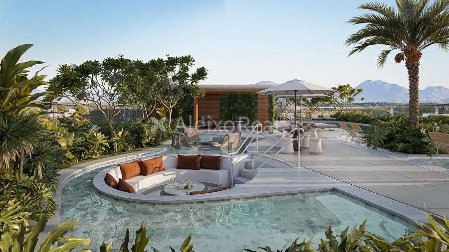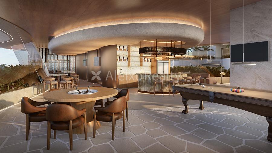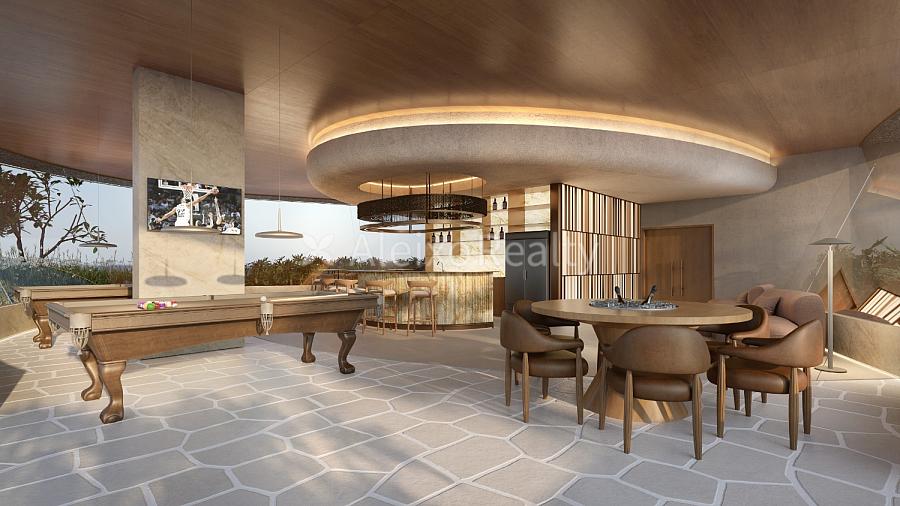 • Cobertura: Piscina cinematográfica com deck molhado, bar molhado, solário, dois lounges descobertos, mirante com vista panorâmica, sport bar com sala de poker, fitness, spa com sauna e ducha.