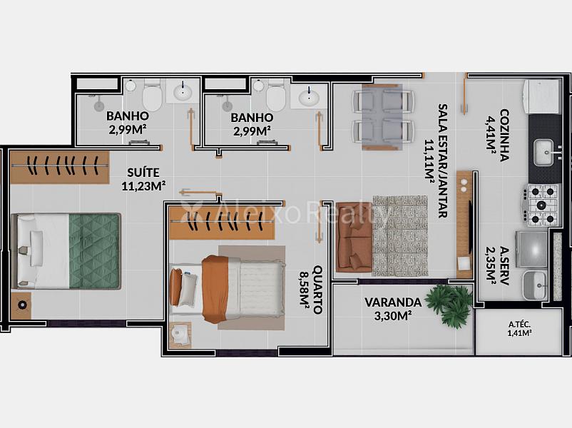 O projeto foi desenhado para oferecer conforto, funcionalidade e qualidade de vida sob medida para cada morador.