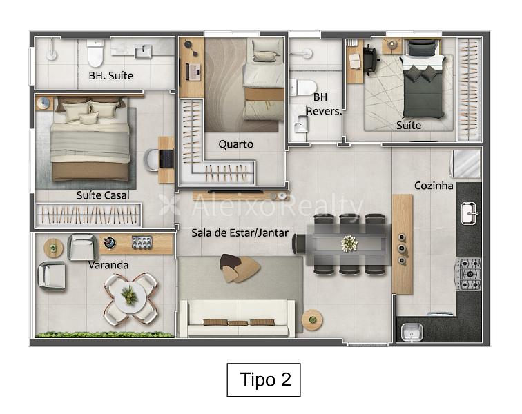 São 45 apartamentos distribuídos em 7 pavimentos tipo, além de coberturas lineares que oferecem vista privilegiada para o Convento da Penha e para o mar da Praia da Costa. As unidades contam com plantas funcionais e bem resolvidas, variando entre 2 e 3 quartos, com 1 ou 2 vagas de garagem, atendendo a diferentes perfis de famílias que valorizam o equilíbrio entre espaço, conforto e praticidade.