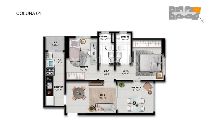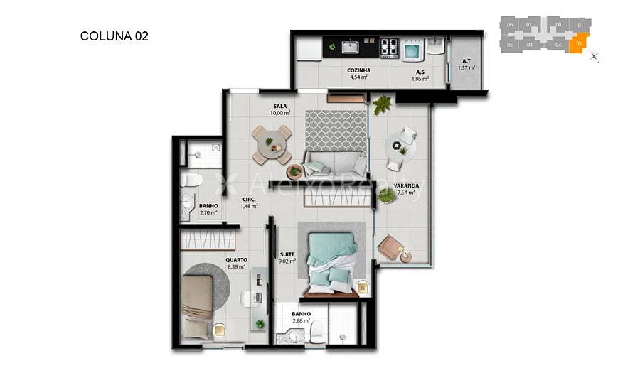 2 dormitórios (1 suíte)