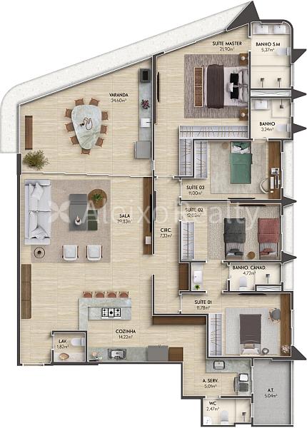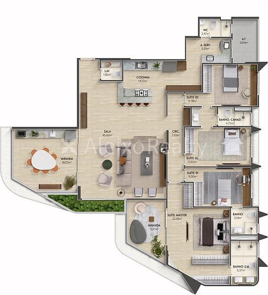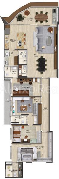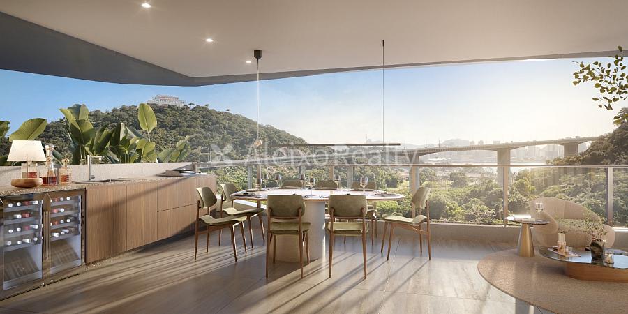 Todos os apartamentos possuem 4 suítes, varandas generosas e acabamentos de alto padrão, com infraestrutura completa para automação, ar-condicionado, chuveiro a gás e gourmet.