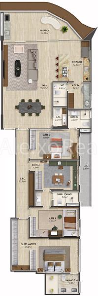 Colunas 2 e 4: 174,57 m² – 4 suítes – 3 vagas