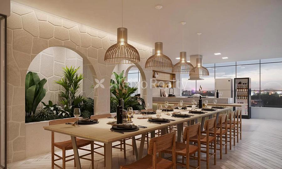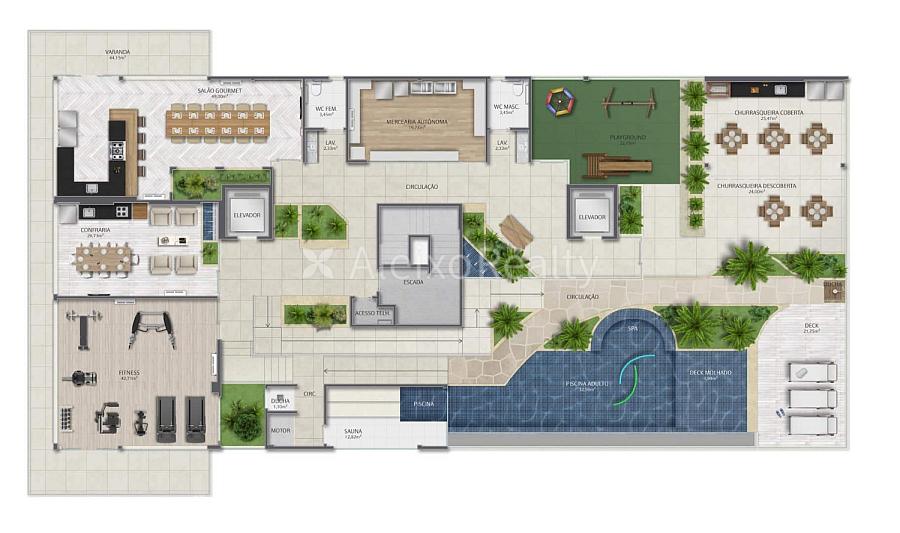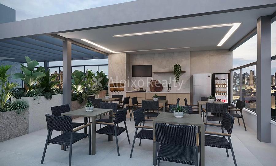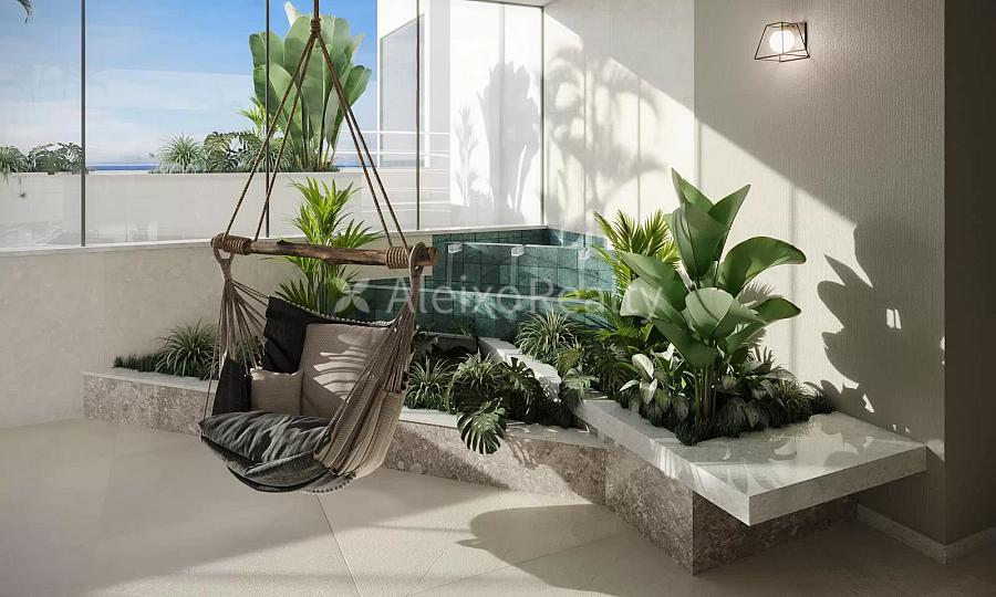 O empreendimento se destaca pelo lazer completo na cobertura, com piscina de borda infinita e spa, sauna com acesso direto à piscina, academia com vista para o mar, espaço gourmet decorado, playground, churrasqueira e mercearia autônoma, garantindo conveniência e lazer em um mesmo endereço.
