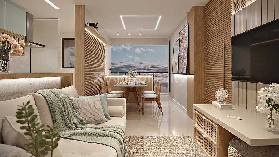 Com unidades de 60 a 84 m² de área útil e 60 a 96 m² de área total, o Nautic Bay conta com apartamentos de 2 quartos, sendo 1 suíte, 2 banheiros e 1 a 2 vagas de garagem. Cada ambiente foi pensado para garantir funcionalidade, conforto e sofisticação, com acabamentos de alto padrão e integração entre sala, cozinha e varanda.