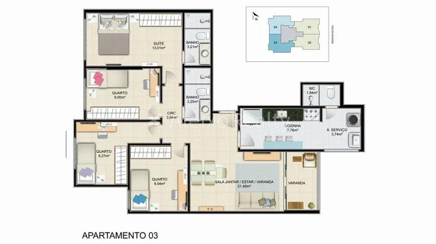 Com apartamentos de 98,5 m², o Vernazza Grand oferece plantas amplas e bem distribuídas, com 4 quartos, sendo 1 suíte, 2 a 3 banheiros e 2 vagas de garagem. Cada unidade foi pensada para oferecer funcionalidade e bem-estar, aliando design moderno e um estilo de vida sofisticado ideal para famílias que valorizam qualidade e conforto.