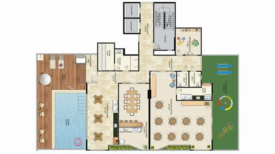 A área de lazer é completa e equipada para todas as idades, incluindo piscina adulto e infantil, playground, brinquedoteca, salão de festas, solarium, além de portaria e elevador social que reforçam a segurança e a comodidade do dia a dia.
