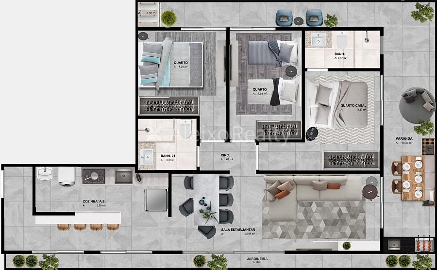 • Apartamentos de 3 quartos, para famílias que buscam mais espaço.