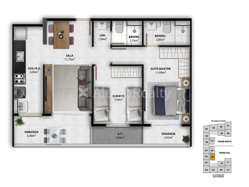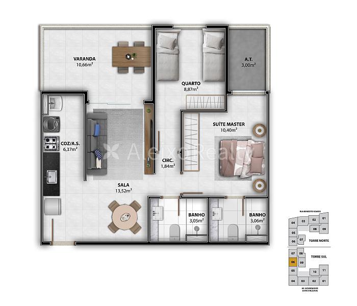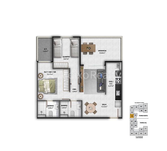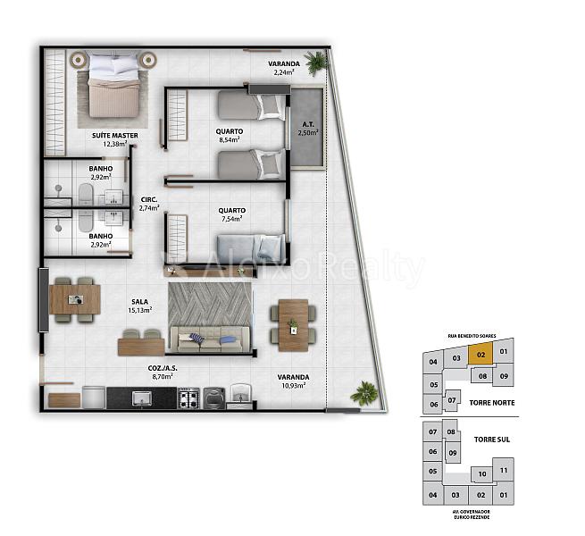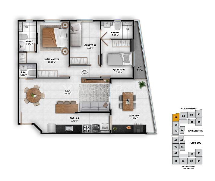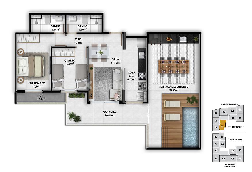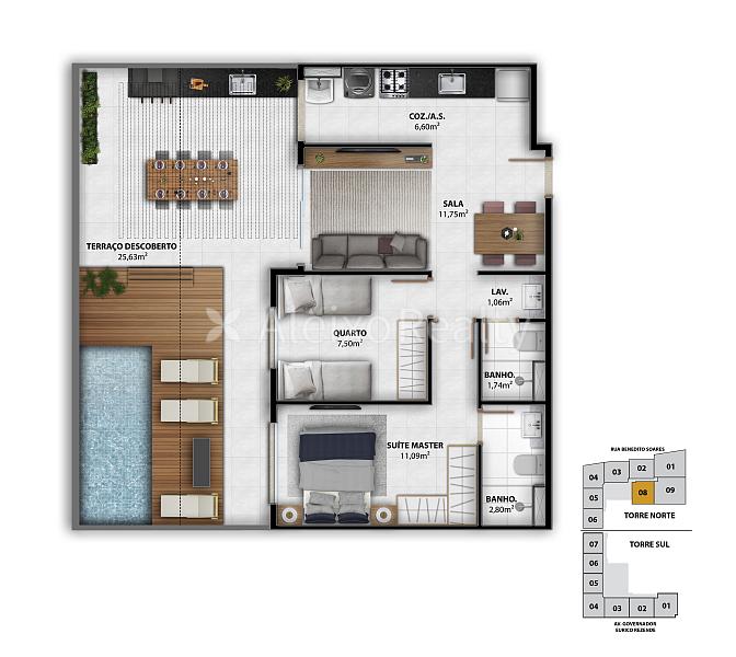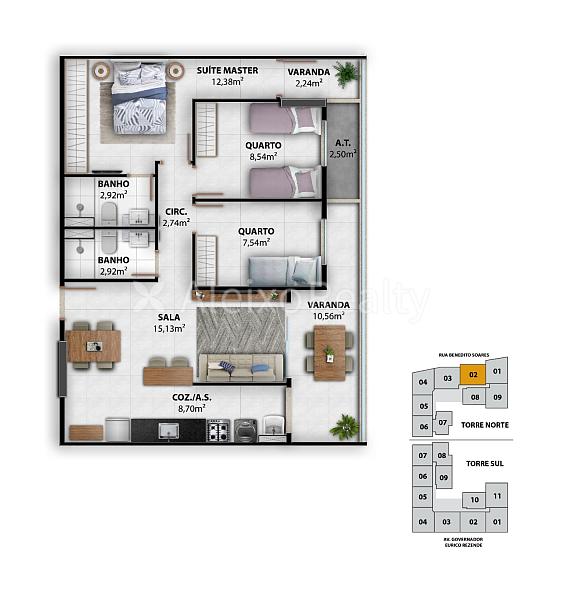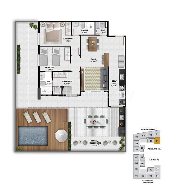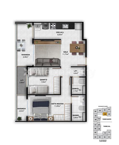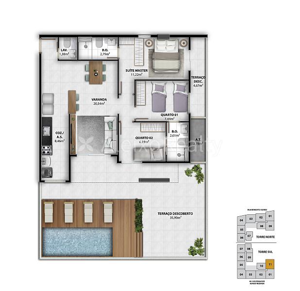• Número de vagas: 275 residenciais, 7 visitantes e 6 de uso comum