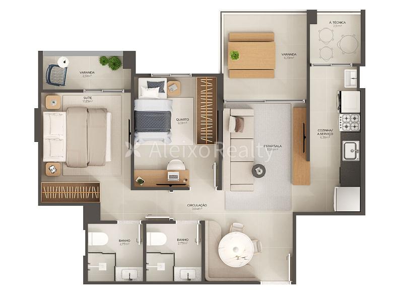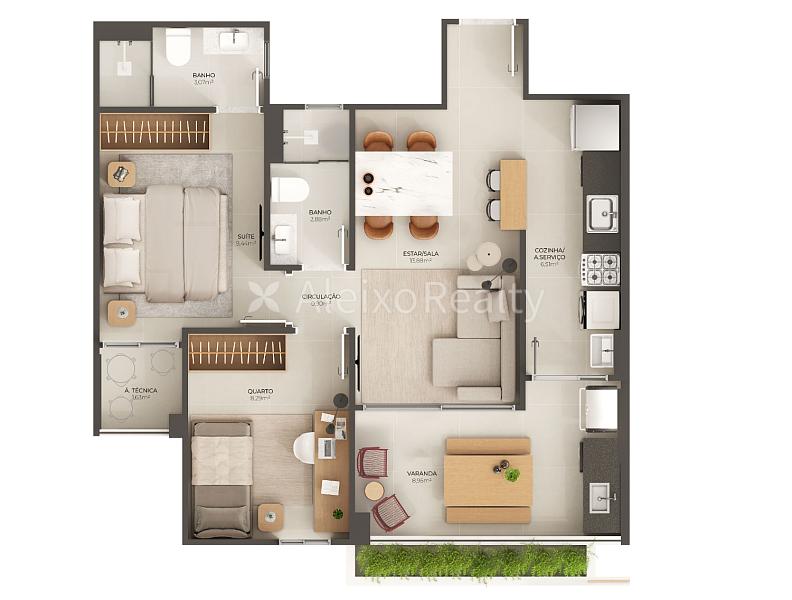 2 dormitórios (1 suíte)