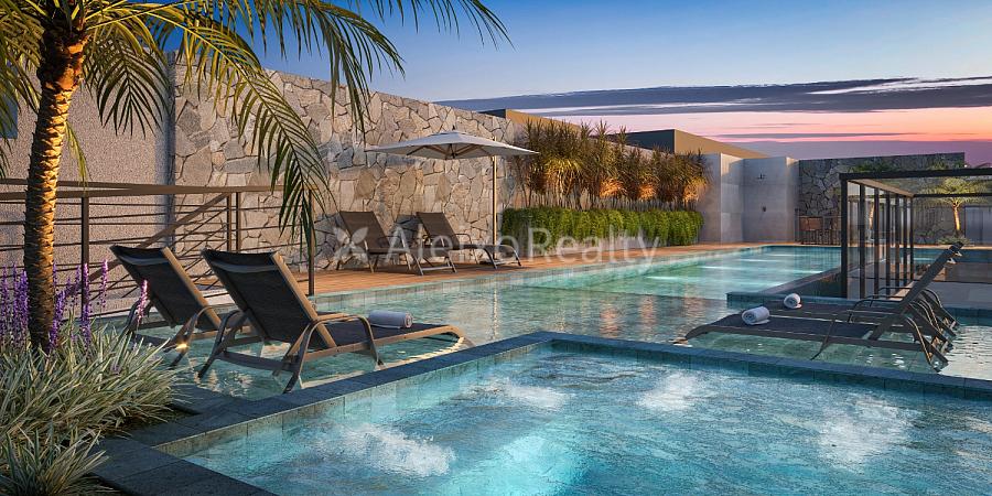 - Piscina com deck molhado e solarium