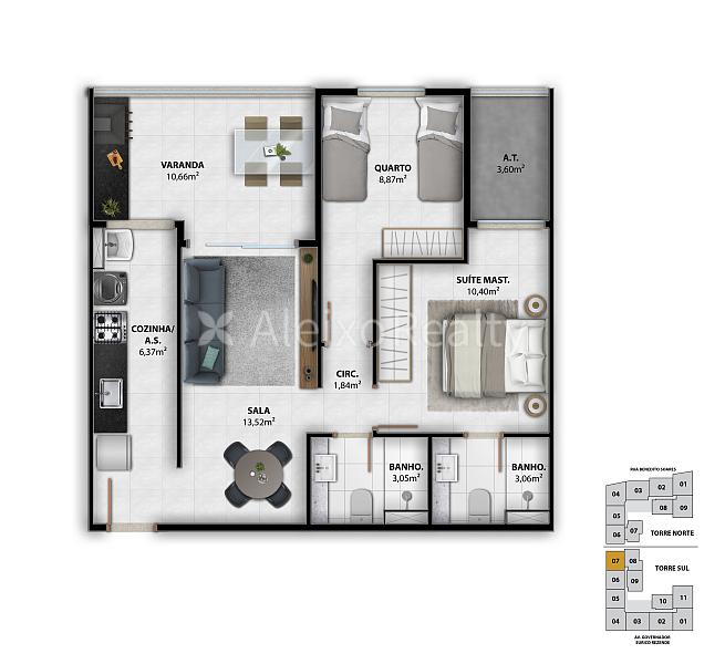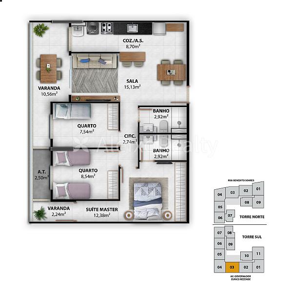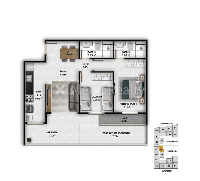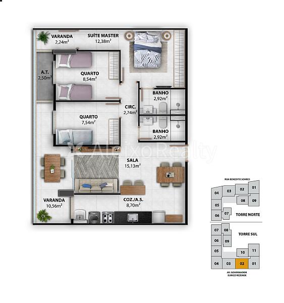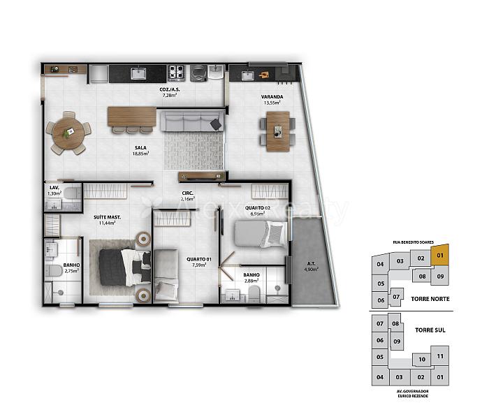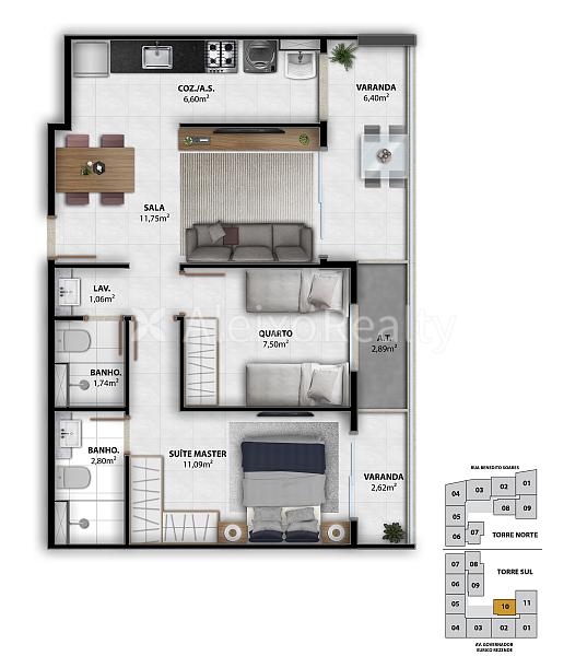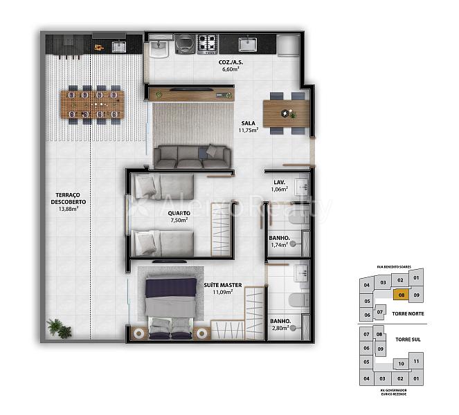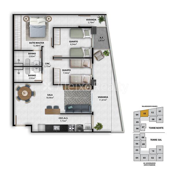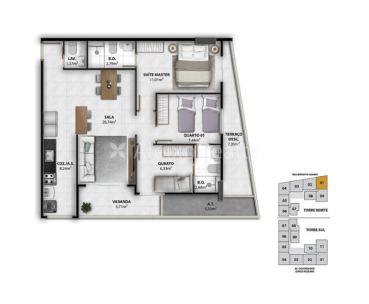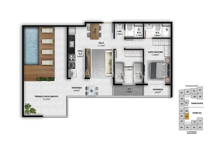 • Número de vagas: 275 residenciais, 7 visitantes e 6 de uso comum