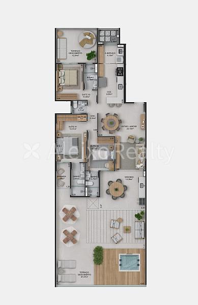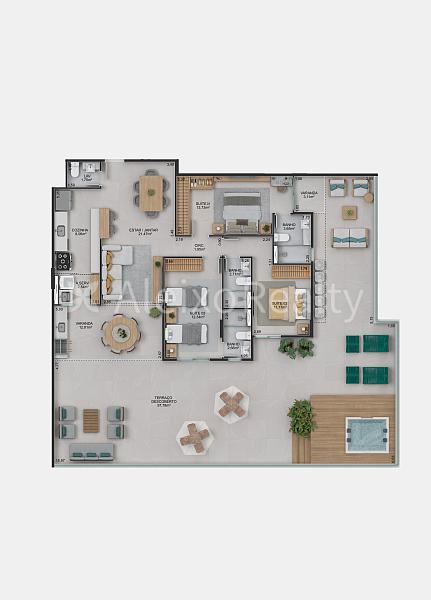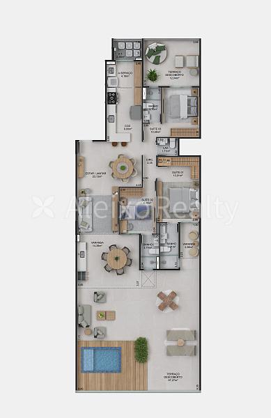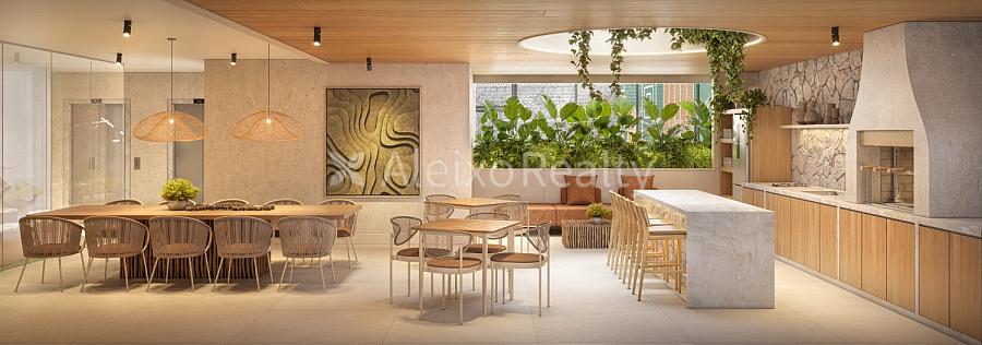 Espaço Serena: Um ambiente exclusivo dentro da área de lazer, projetado para proporcionar experiências únicas e memoráveis. O espaço conta com piscina aquecida, churrasqueira, adega/cervejeira, cooktop/forno e tecnologia automatizada, permitindo que os moradores realizem eventos privativos e momentos de convivência em um cenário diferenciado e sofisticado.