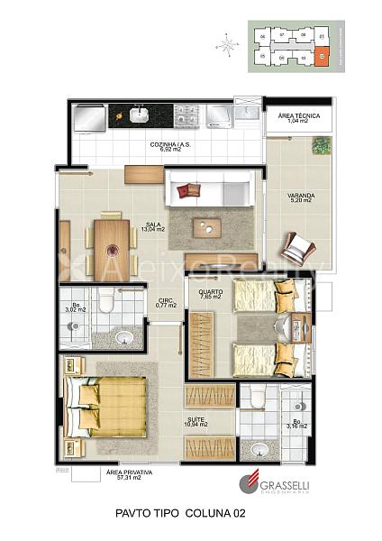 2 dormitórios (1 suíte)