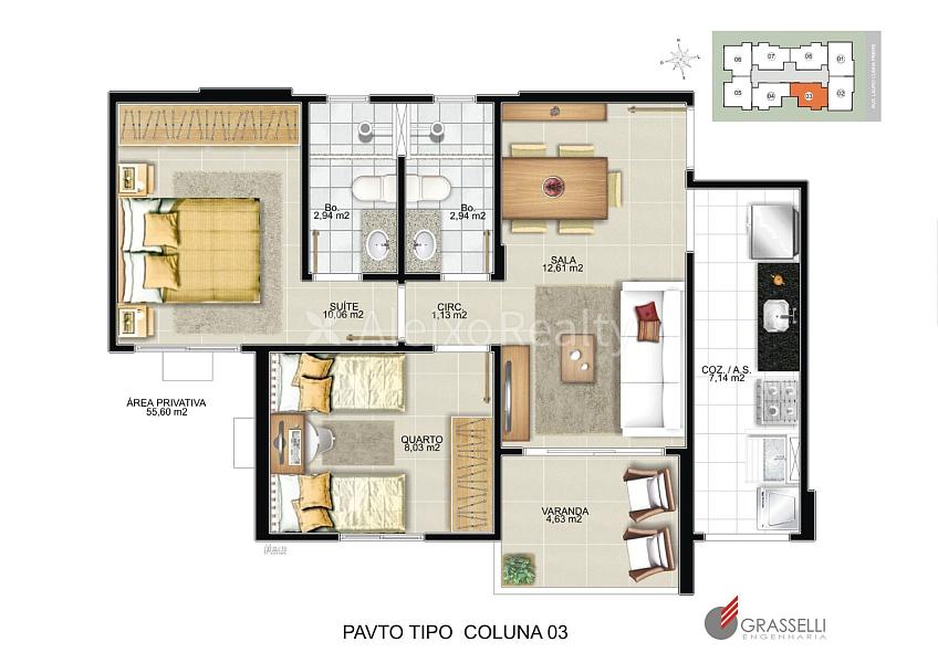 55,00 m² de área privativa