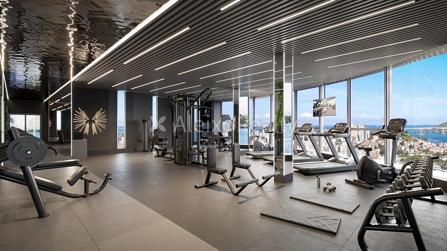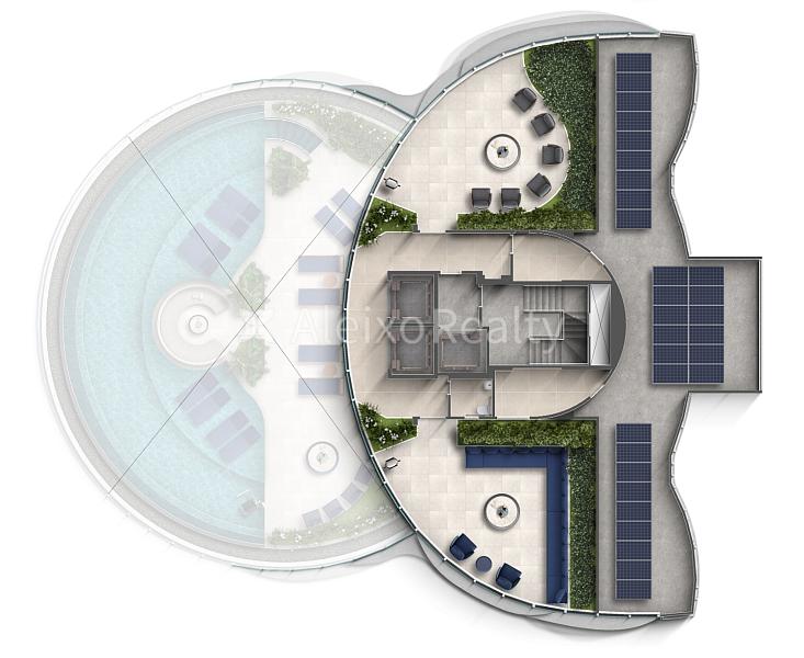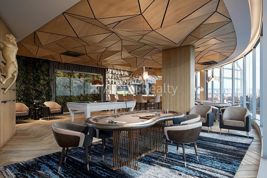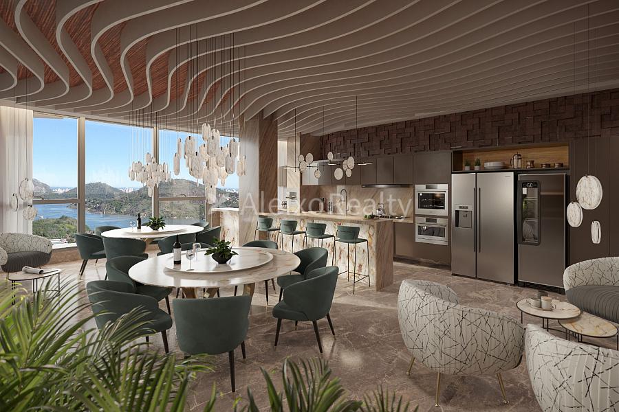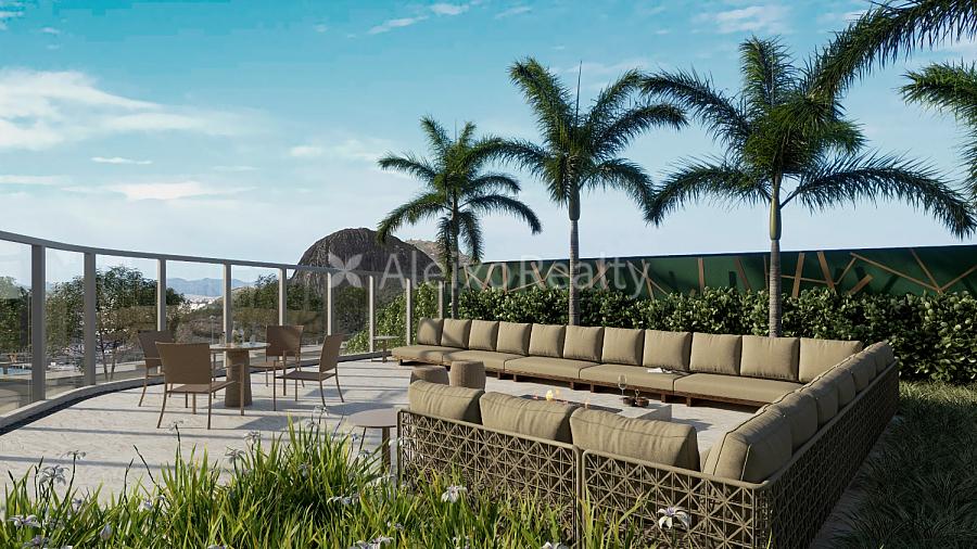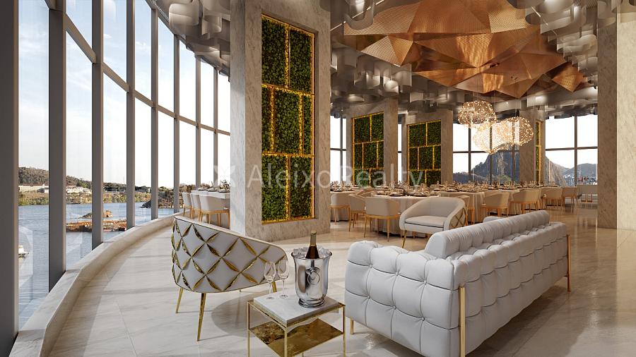 • Cobertura (35º ao 37º andar): piscina de borda infinita com decks molhado e seco, lounge, academia completa, sauna, spa com piscina aquecida, dois espaços gourmet (confraria e grill), pub com vista panorâmica, sky gardens com champanheira e mirantes para Vila Velha e Guarapari.