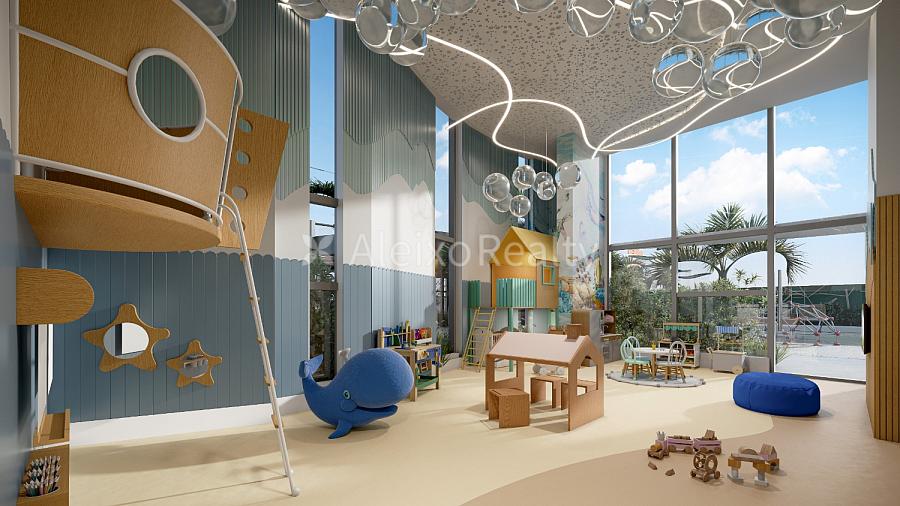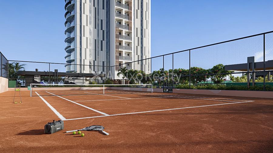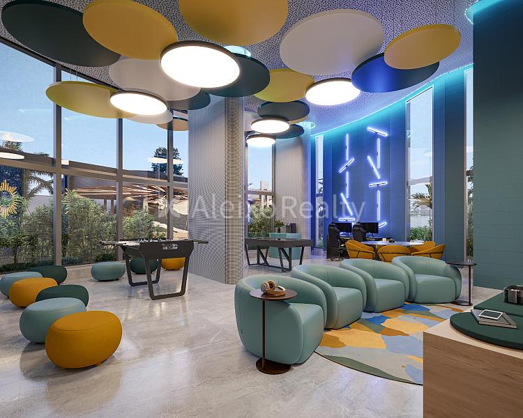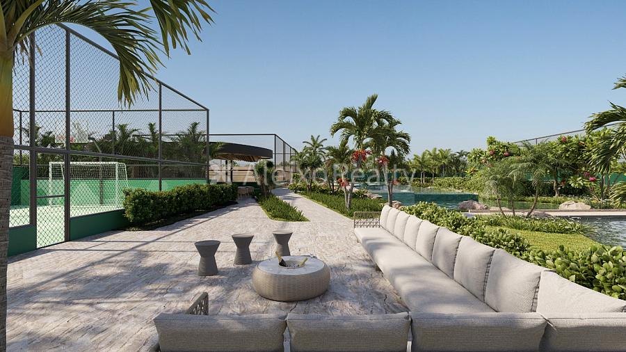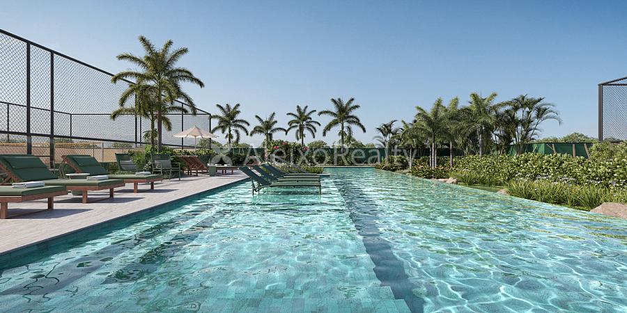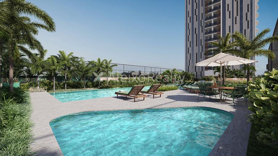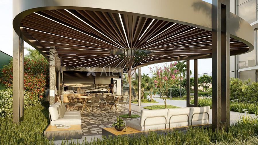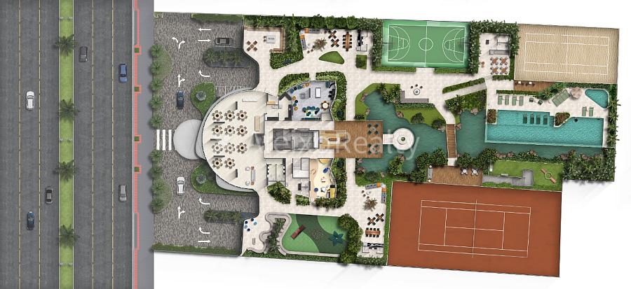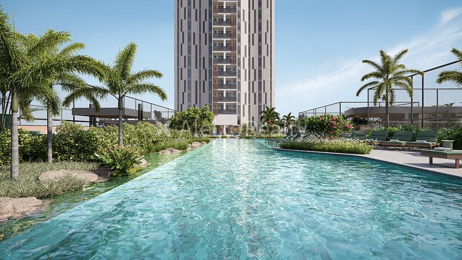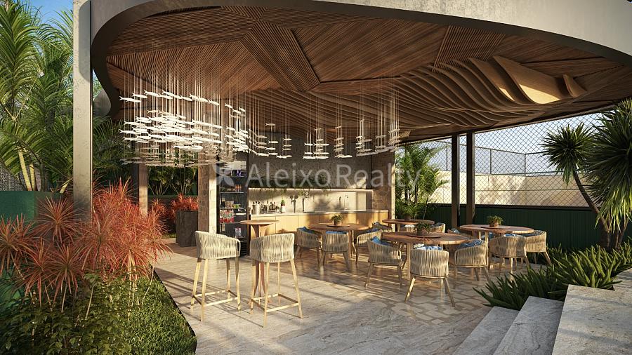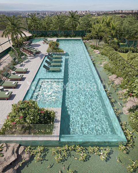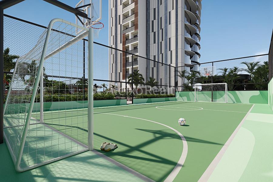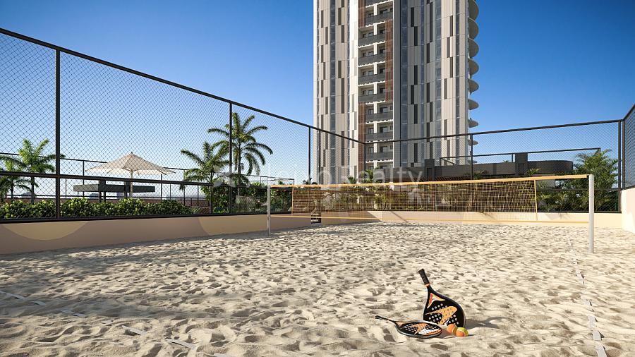 • Área de lazer no 2º e 3º pavimentos: coworking, sala de reunião, salão de beleza, garage band, salão de festas completo com copa e cozinha, espaços teen e kids, deck central, playground, praças de festas, churrasqueiras, beach bar, quadras de futebol, basquete, tênis e beach tennis, praça pet e campo gramado.