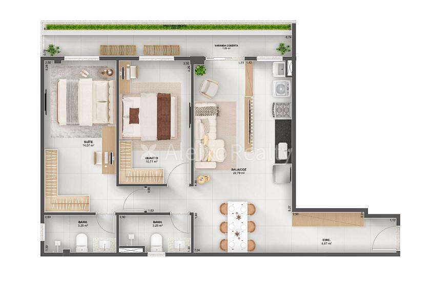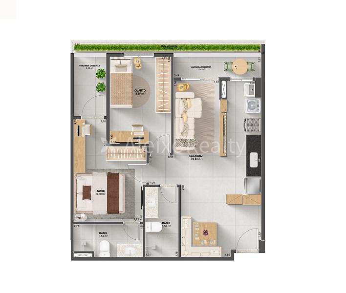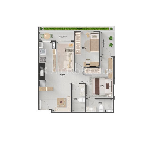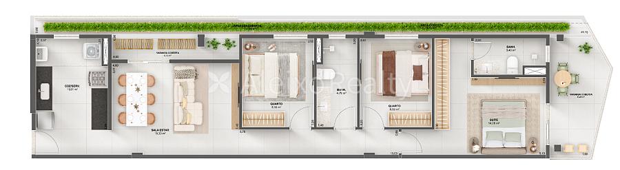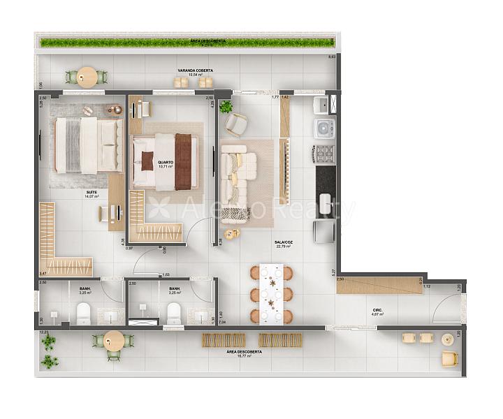• Tipologia: 1, 2 e 3 quartos | Unidades garden | 2 coberturas duplex (2 suítes)