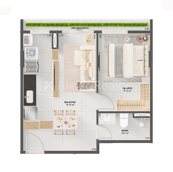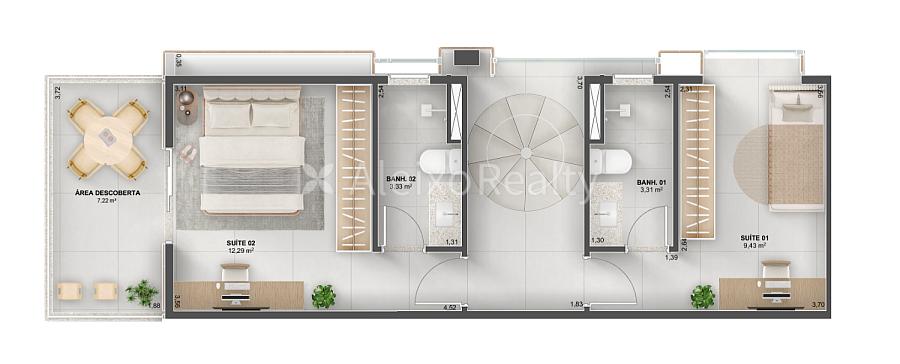 O Izza oferece uma variedade de plantas que valorizam o conforto e o aproveitamento inteligente dos espaços, incluindo apartamentos de 1, 2 e 3 quartos, unidades garden e duas coberturas duplex exclusivas, ambas com 2 suítes e terraços descobertos que proporcionam amplitude, iluminação natural e vistas privilegiadas da região mais desejada de Vitória.