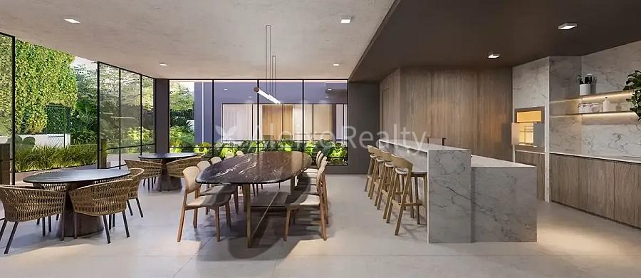 O projeto arquitetônico contemporâneo foi concebido por profissionais com atuação internacional, incorporando materiais nobres, integração com a natureza e design atemporal.