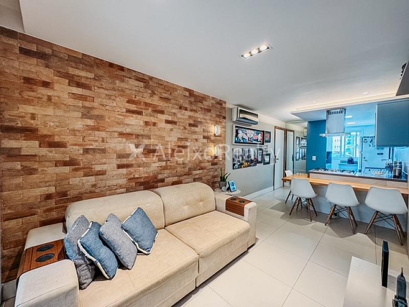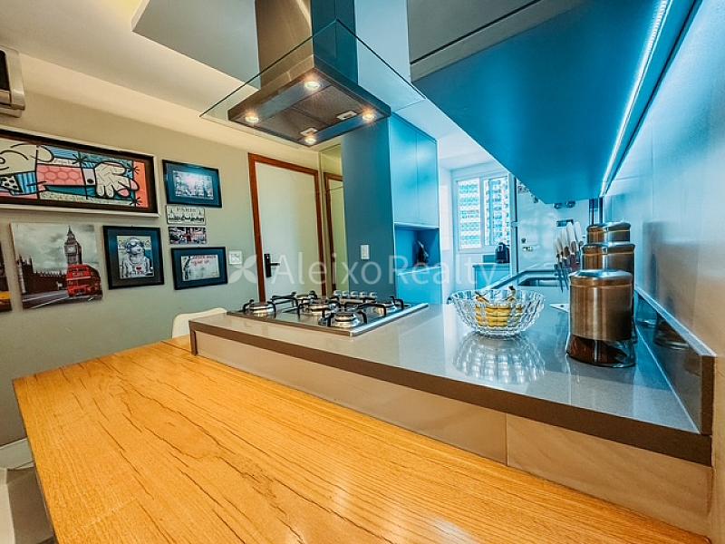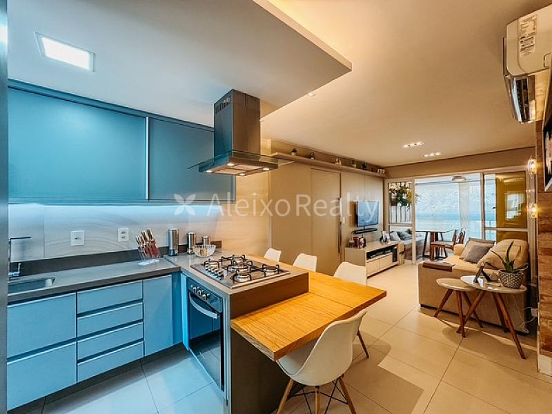 Com 70m² muito bem distribuídos, este apartamento foi planejado para quem busca um estilo de vida moderno e sofisticado. O imóvel conta com 2 quartos, sendo um deles suíte, e uma vaga de garagem coberta. Totalmente climatizado, possui uma cozinha gourmet com ilha central integrada à sala, equipada com coifa de design contemporâneo, fogão cooktop, forno, micro-ondas embutidos e lava-louças. Além disso, oferece banheiro social, lavanderia e área de serviço.