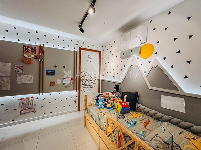 Um dos grandes atrativos é que o apartamento será vendido no estilo porteira fechada – ou seja, completamente mobiliado e decorado com móveis e acabamentos de alto padrão. A unidade é voltada para a frente do edifício e recebe o agradável sol da manhã. Os espaços internos foram projetados de forma funcional, garantindo o melhor aproveitamento possível.