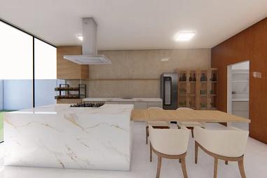 Composto por três suítes espaçosas e uma cozinha de apoio, garantindo privacidade e praticidade para o dia a dia da família.