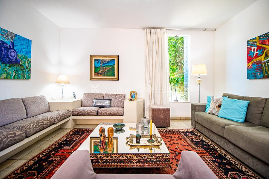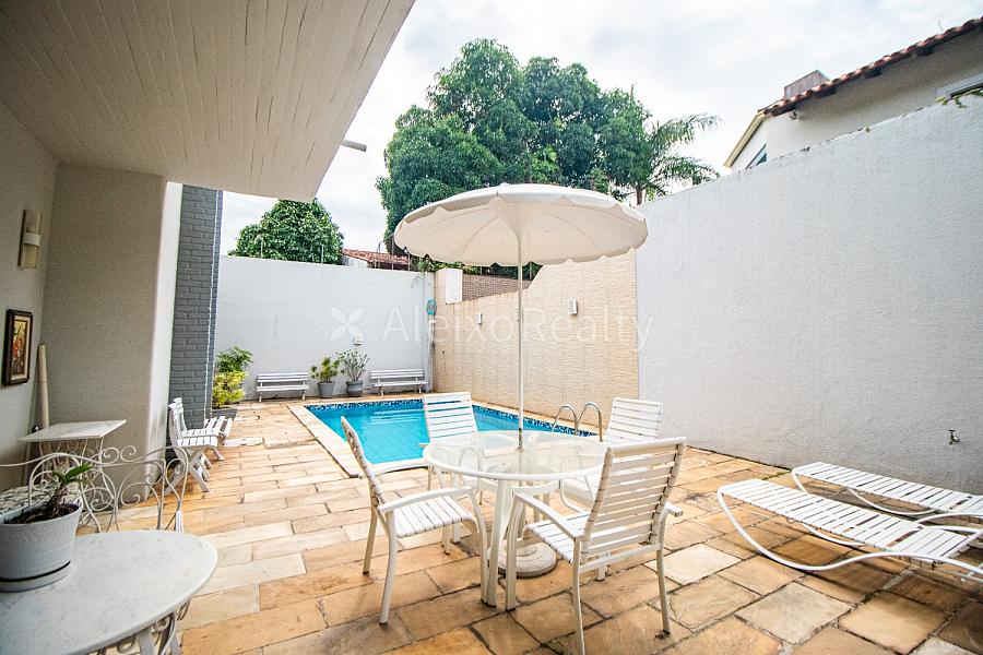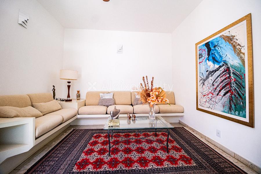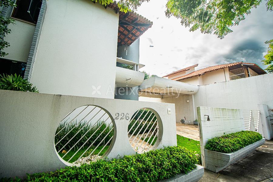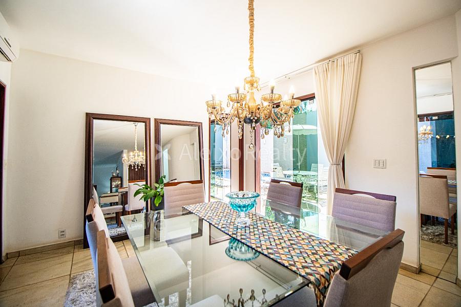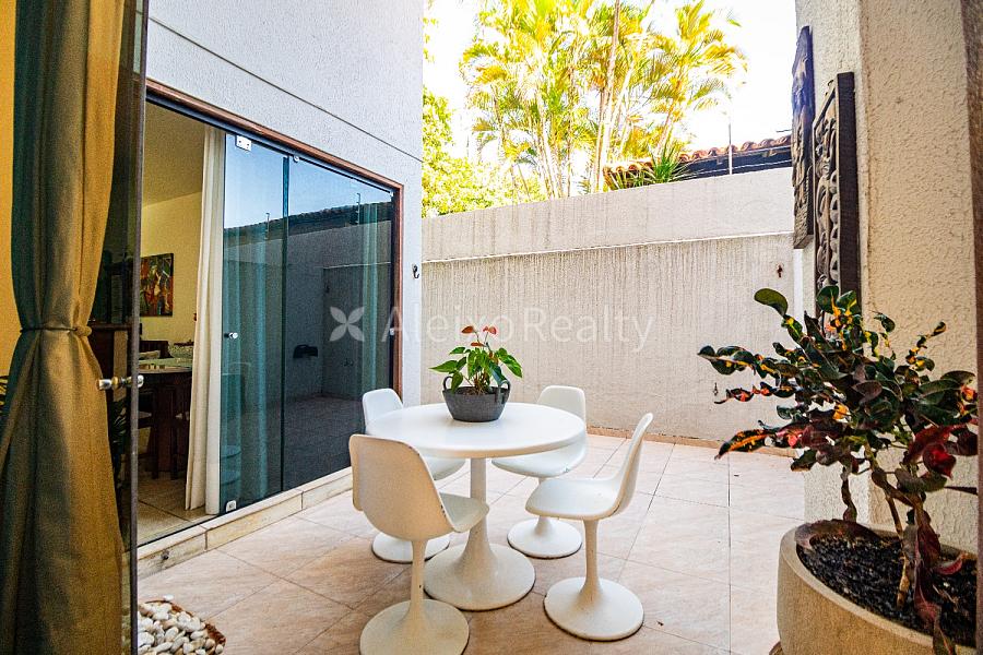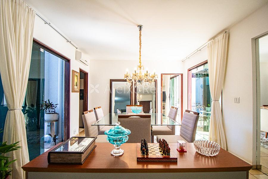 Com 390 m² de terreno e 260 m² de área construída, o imóvel possui 4 quartos, sendo 1 suíte, 5 banheiros e 4 vagas de garagem. A arquitetura foi planejada para integrar ambientes amplos, iluminados e ventilados, proporcionando uma experiência de moradia completa.