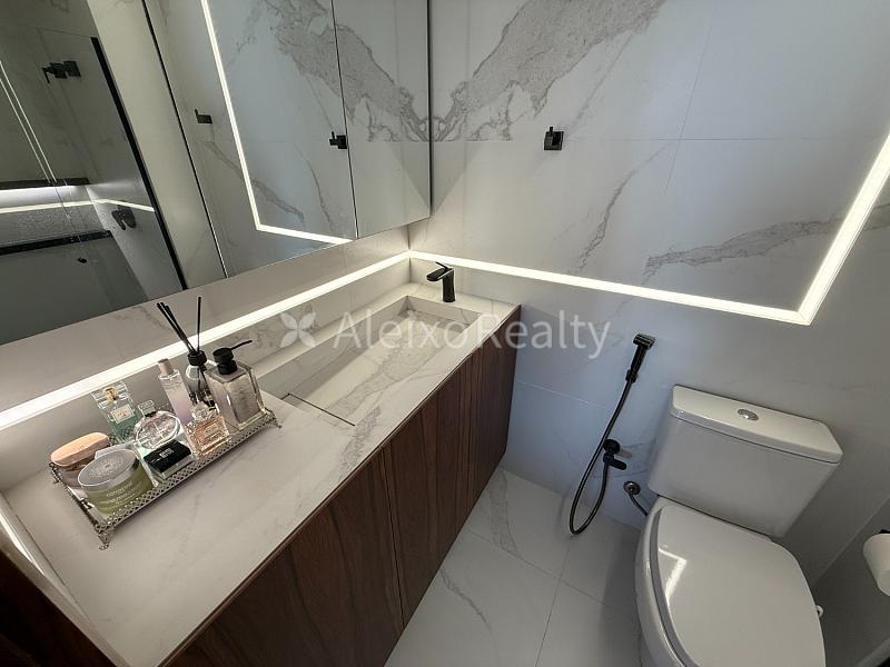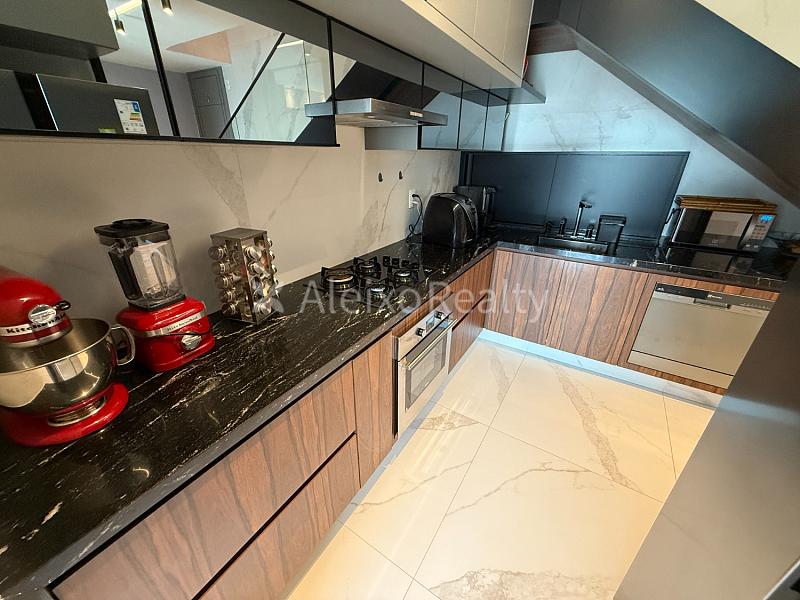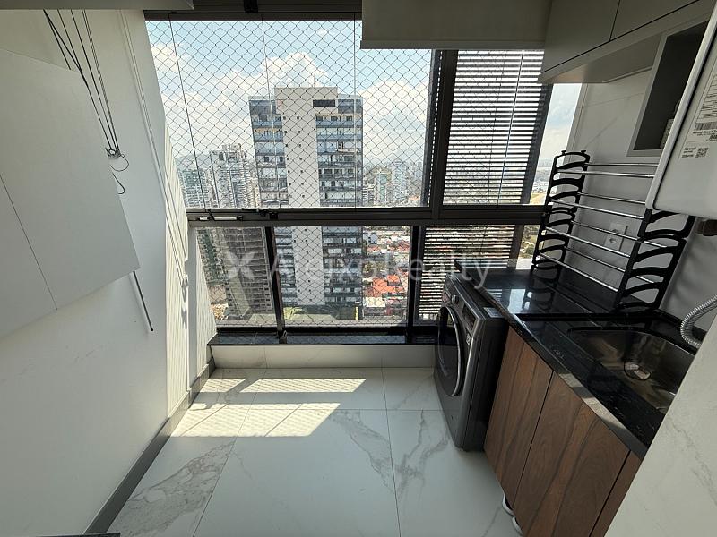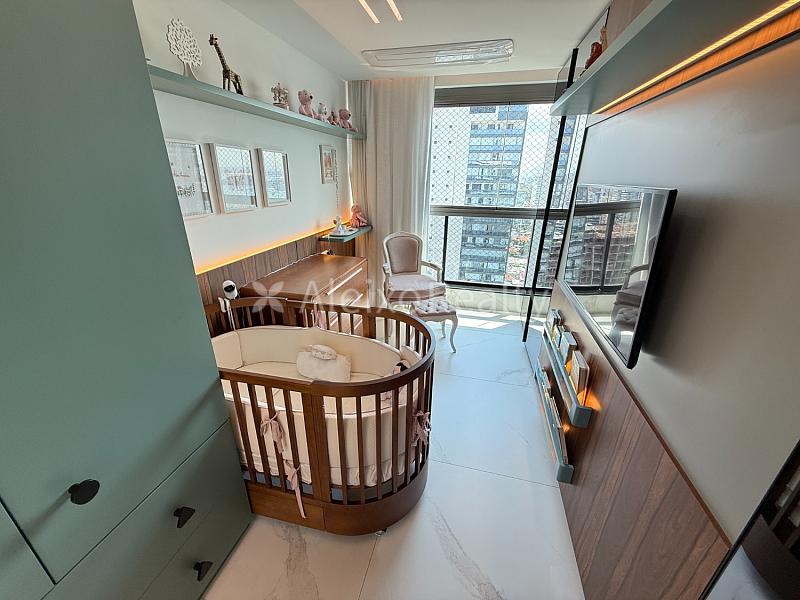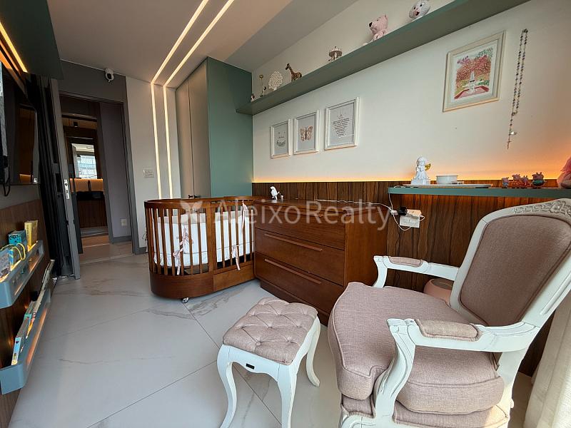 São 3 quartos, sendo 1 suíte, cozinha com bancada em granito Via Láctea, marcenaria Brumatti sob medida e portas laqueadas de alto padrão.