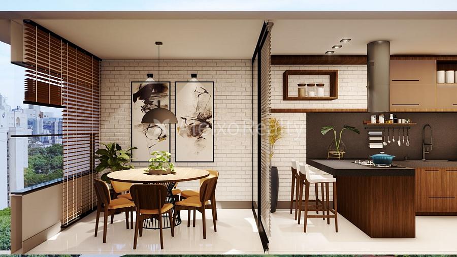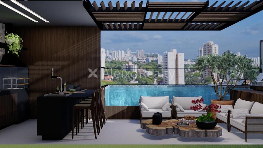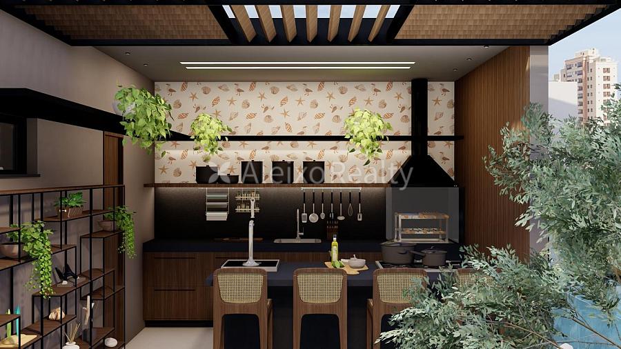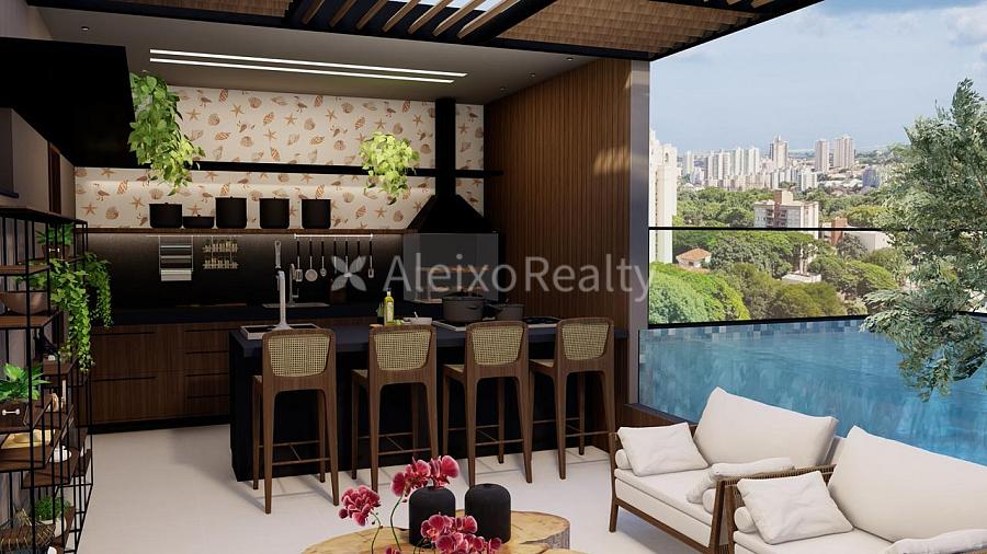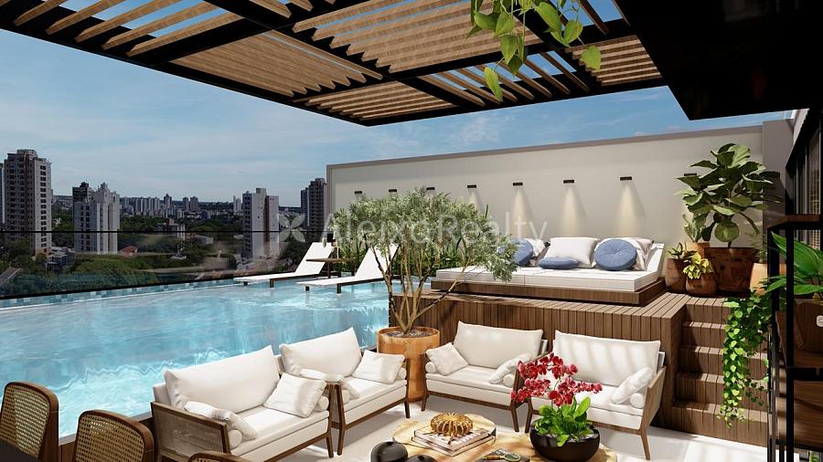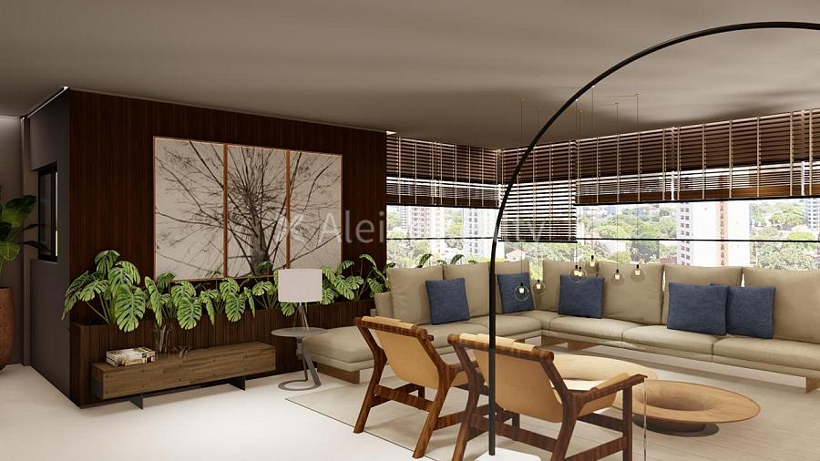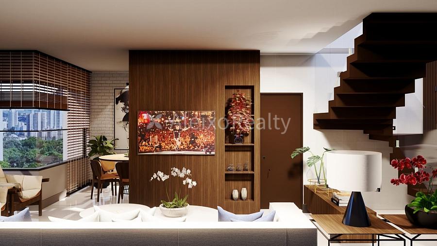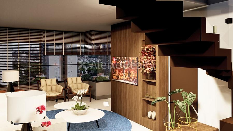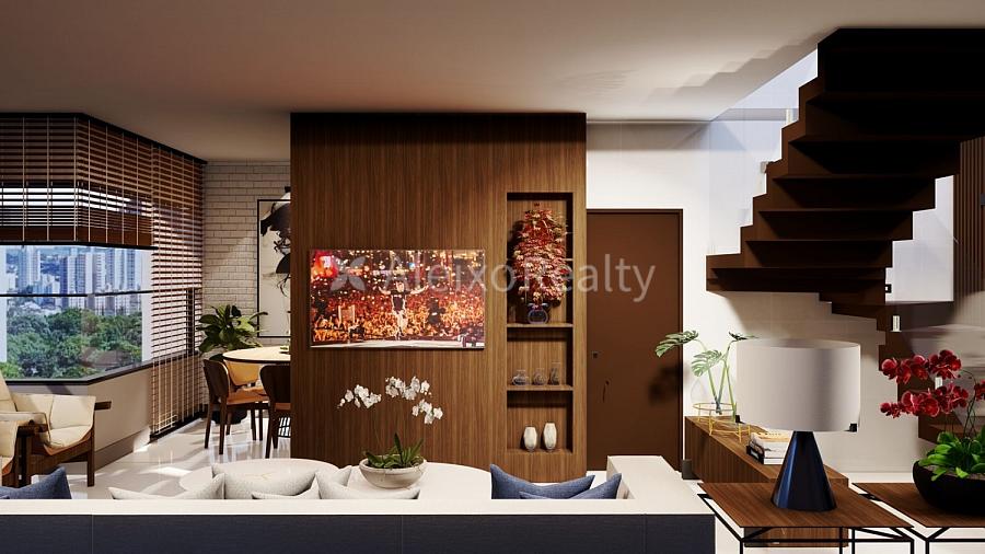 Esta cobertura duplex de 313 m² apresenta um projeto contemporâneo de alto padrão, com soluções arquitetônicas sustentáveis, hall social privativo e uma configuração que privilegia amplitude, privacidade e integração entre os ambientes.