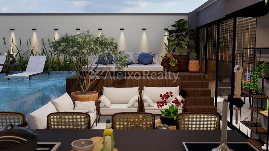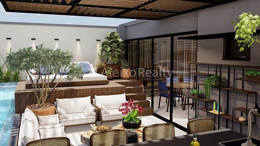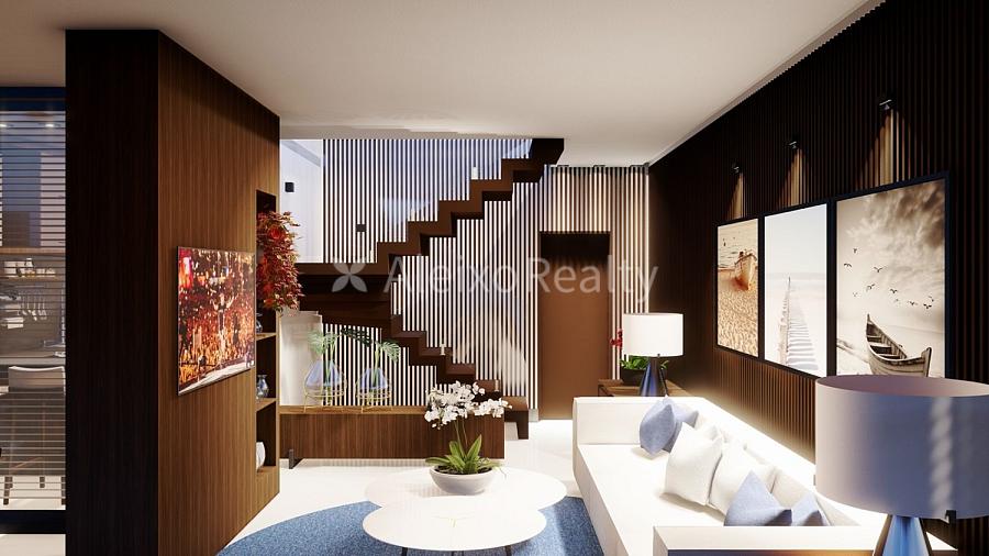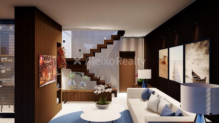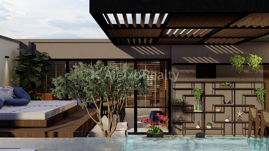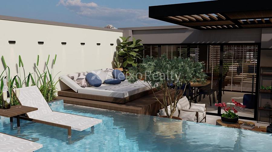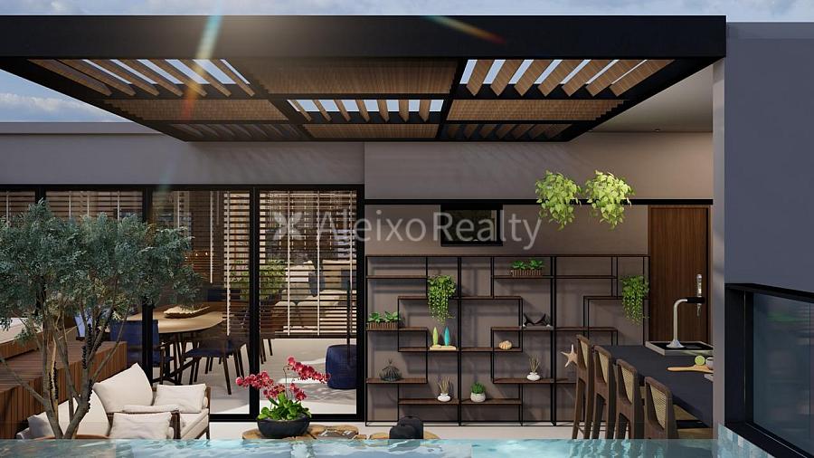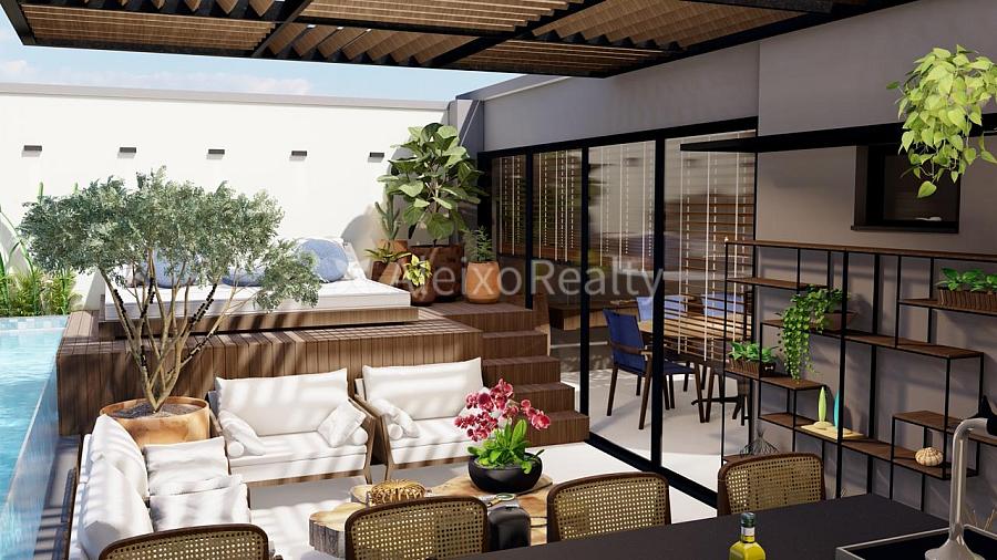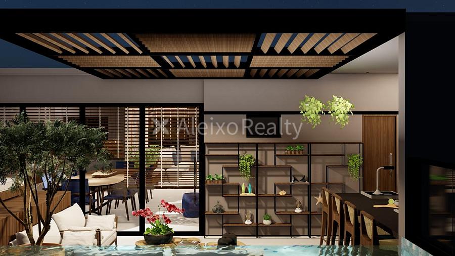 Esta cobertura duplex de 313 m² apresenta um projeto contemporâneo de alto padrão, com soluções arquitetônicas sustentáveis, hall social privativo e uma configuração que privilegia amplitude, privacidade e integração entre os ambientes.