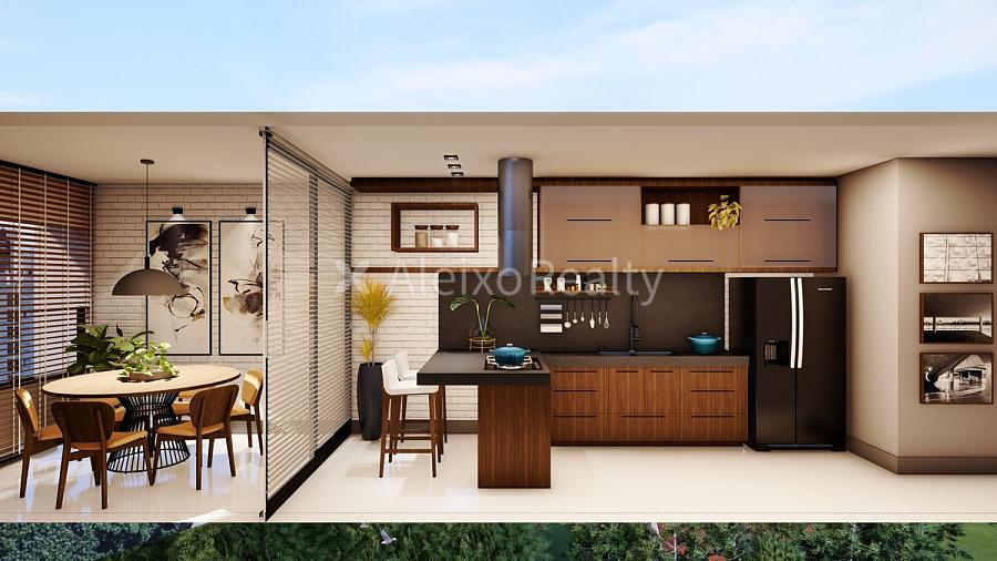 O empreendimento conta com arquitetura biofílica e contemporânea, paisagismo especial com irrigação automatizada e uma estrutura completa de lazer, composta por sala de reunião, brinquedoteca, play e quadra poliesportiva. Entre os diferenciais sustentáveis estão o reaproveitamento de água da chuva para jardins e limpeza das áreas comuns, sensores de presença e infraestrutura para carregamento de veículos elétricos.